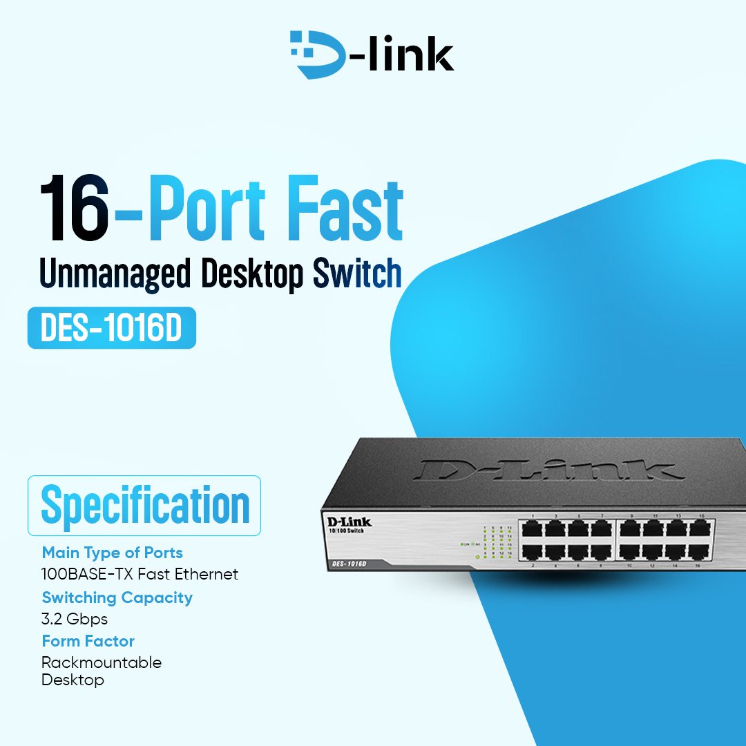 • Model: D-Link DES-1016D16-Port Fast Ethernet Unmanaged Switch